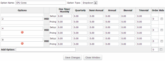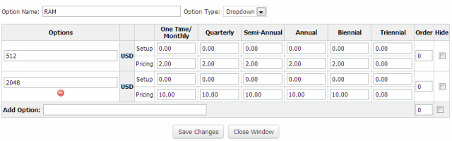 Note: The order of preference for selection of Configurable Options is first i.e. If a Product/Service has (lets say) Ram defined as 512 MB and you have also created a Configurable Option with variable Ram options, then the users chosen Ram value from configurable options will be used and not the ram value in Product/Service.